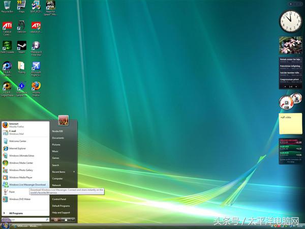 Windows Vista华丽的极光界面,很多朋友都没用过这个系统