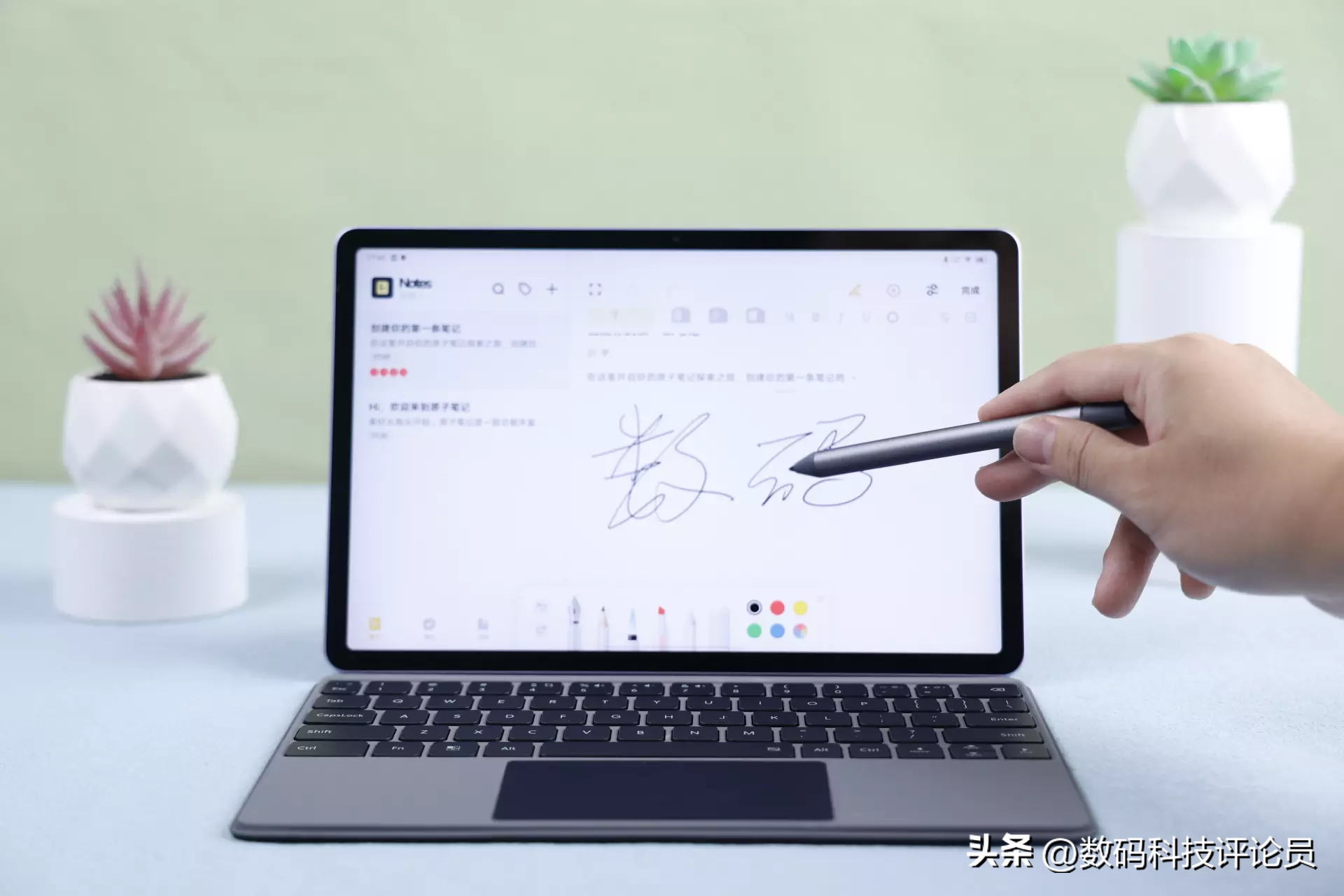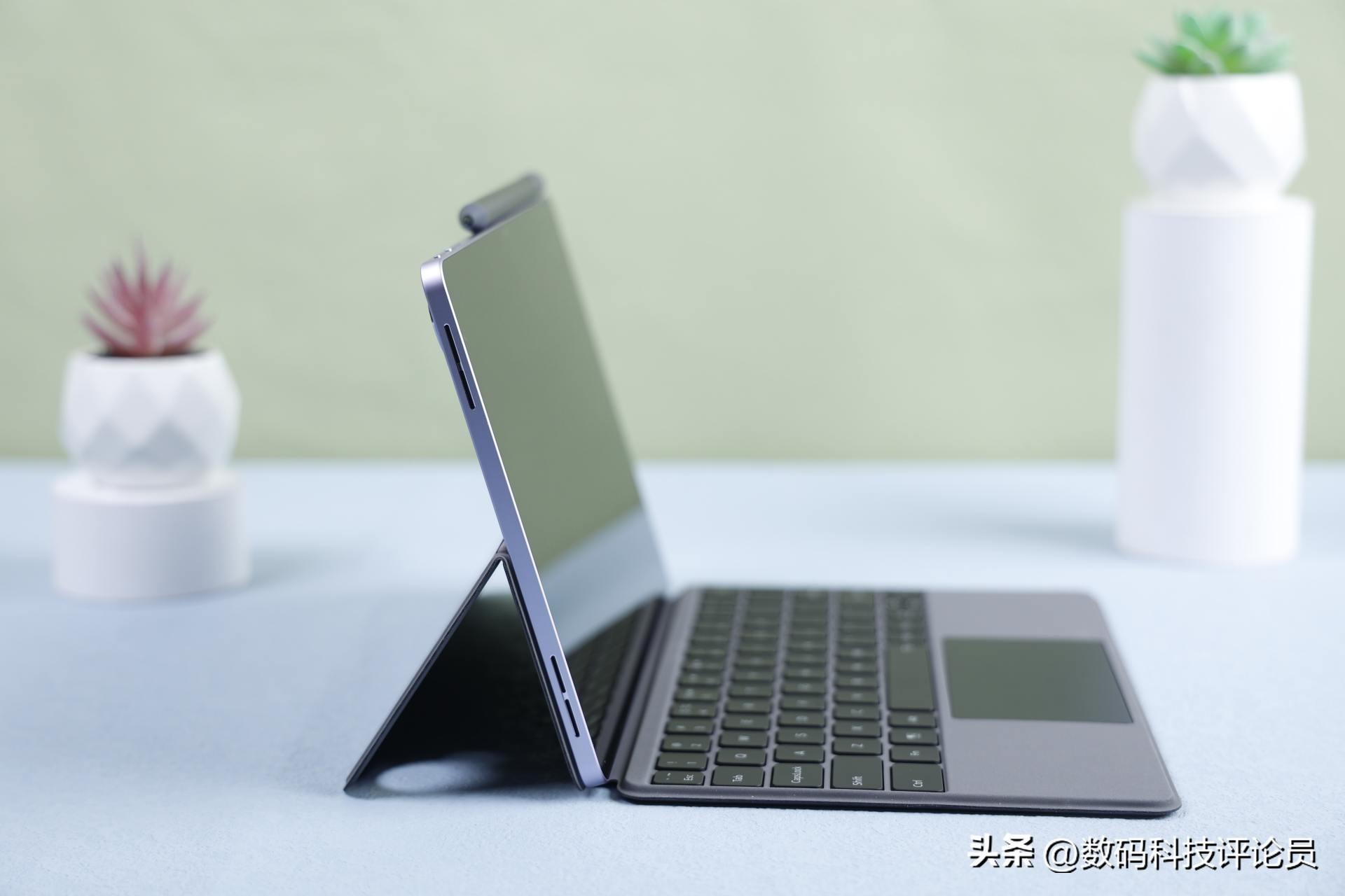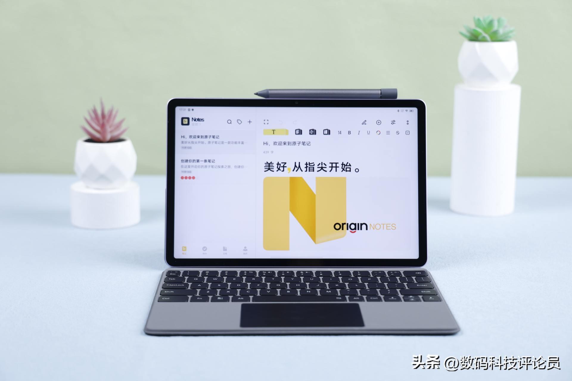 当然生产力套件,支持4096级压感的触控笔和皮套键盘也必不可少,其实这支笔目前的使用方面没什么问题,安卓厂商的主流水平,之前听到有人担心这支笔需要9号电池会不会不够耐用,其实一颗电池能使用一年的情况下,续航也不是需要焦虑的问题。键盘这边,手感各方面都说得过去,触控板的面积很大,支持全域按压,还有配套键盘的众多快捷键,都算是不错的亮点。