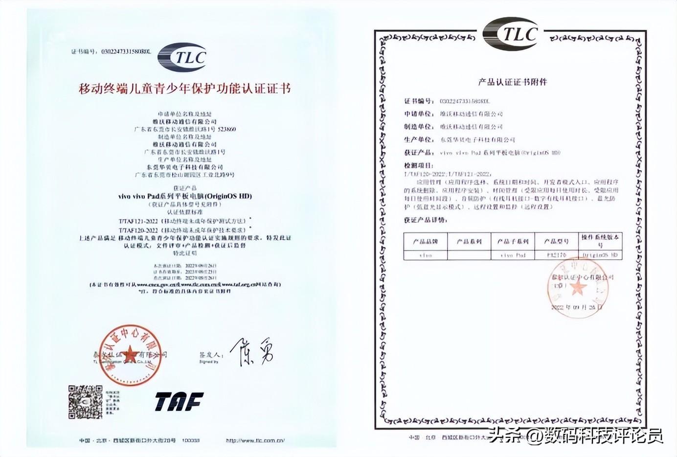 甚至我们可以直接给孩子设置为扫描人脸出现它的空间,它打开平板也就只能学习了,而全新的学习中心不仅内容更加丰富了,而且还有更加完善的平板使用管理,我们能远程监控到孩子使用平板的情况,杜绝孩子错误使用平板。再配合这颗ToF镜头和环境光传感器,检测孩子当前使用平板的光线环境和用眼距离等等,对孩子的用眼做出正确的提示。在这些创新功能的加持下,这一次的vivo Pad也是获得了行业首张泰尔认证中心颁发的《移动终端儿童青少年保护功能认证证书》,全方位为儿童身心健康保驾护航。