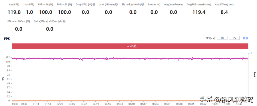 《王者荣耀》测试中,我们发现vivo iQOO Neo5SE有一个性能模式,开启之后能激发更强性能。在把画面设置为最高、帧率120帧模式、高分辨率情况下,进行半小时左右的游戏测试,发现它的平均帧率高达119.8fps,而且帧率十分平稳,没有波动。都说骁龙870带来的游戏体验非常优秀,测试后发现vivo iQOO Neo5SE确实如此。