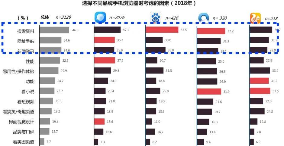 新闻资讯是用户选择浏览器的前三考虑因素之一。