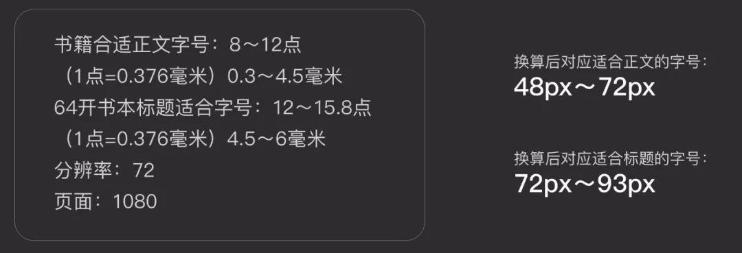 对于正常印刷品来说,我们人眼距离书本30~35cm,字号大小也应该按照这个距离计算,太大太小都会影响阅读。版式规范里8~12点是最适合书籍,正文的字号(1点=0.376毫米,也就是3~4.5mm)。