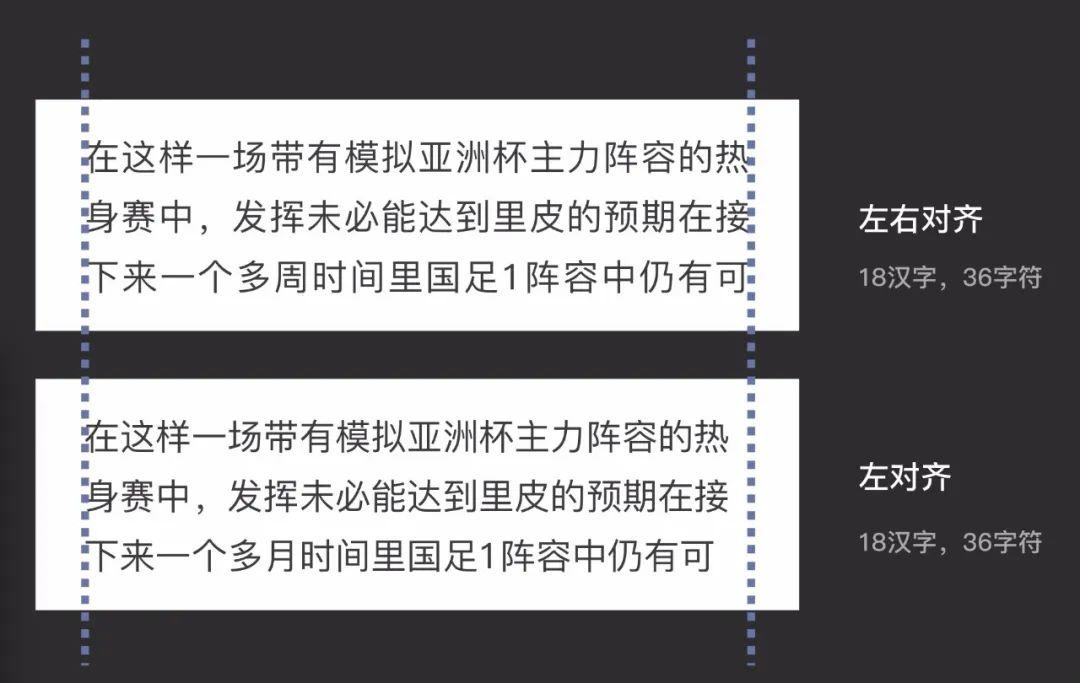 综上对比,我们认为左右对齐的版式在新闻类阅读里,是明显优于左对齐版式。