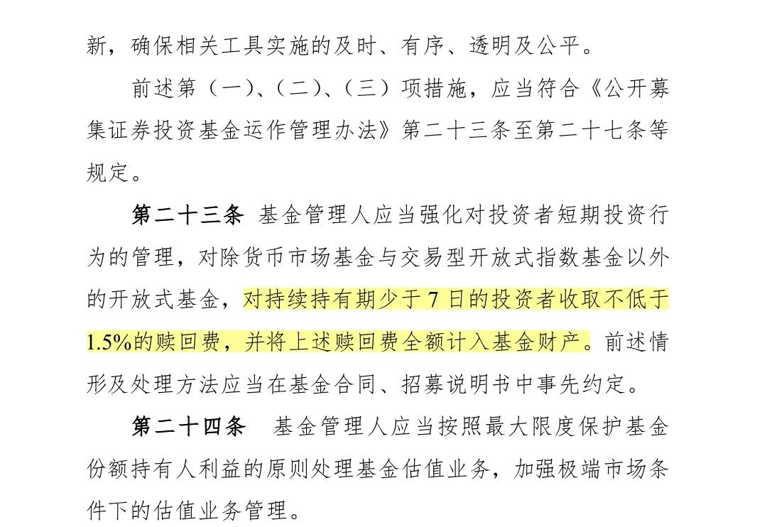 2017年8月31日,证监会颁布《公开募集开放式证券投资基金流动性风险管理规定》要求,“基金管理人应当强化对投资者短期投资行为的管理,对除货币市场基金与交易型开放式指数基金以外的开放式基金,