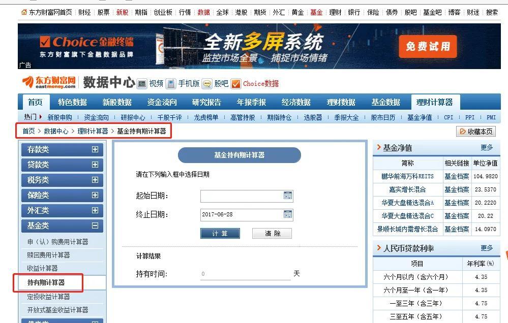 百度搜天天基金网,进入官网,找到理财计算器里面的持有期计算器。