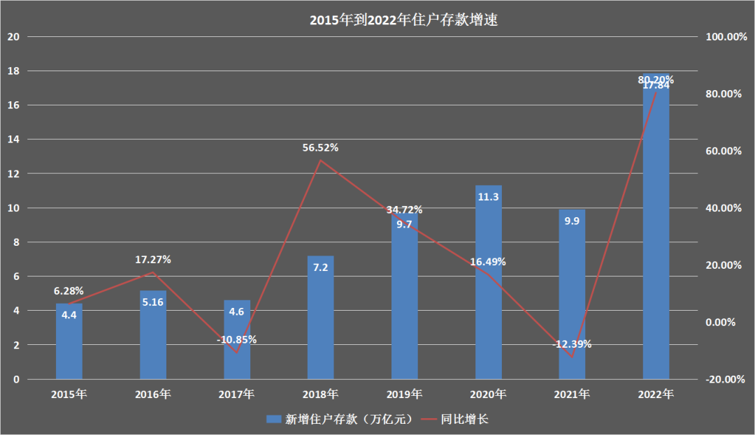 但如果50万以上用户存款的增速跟过去几年我国住户存款的增速保持一致,