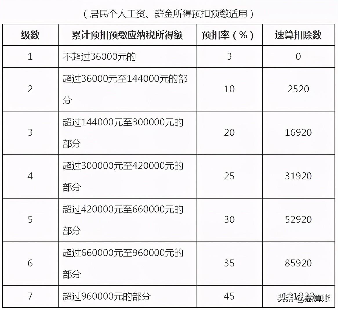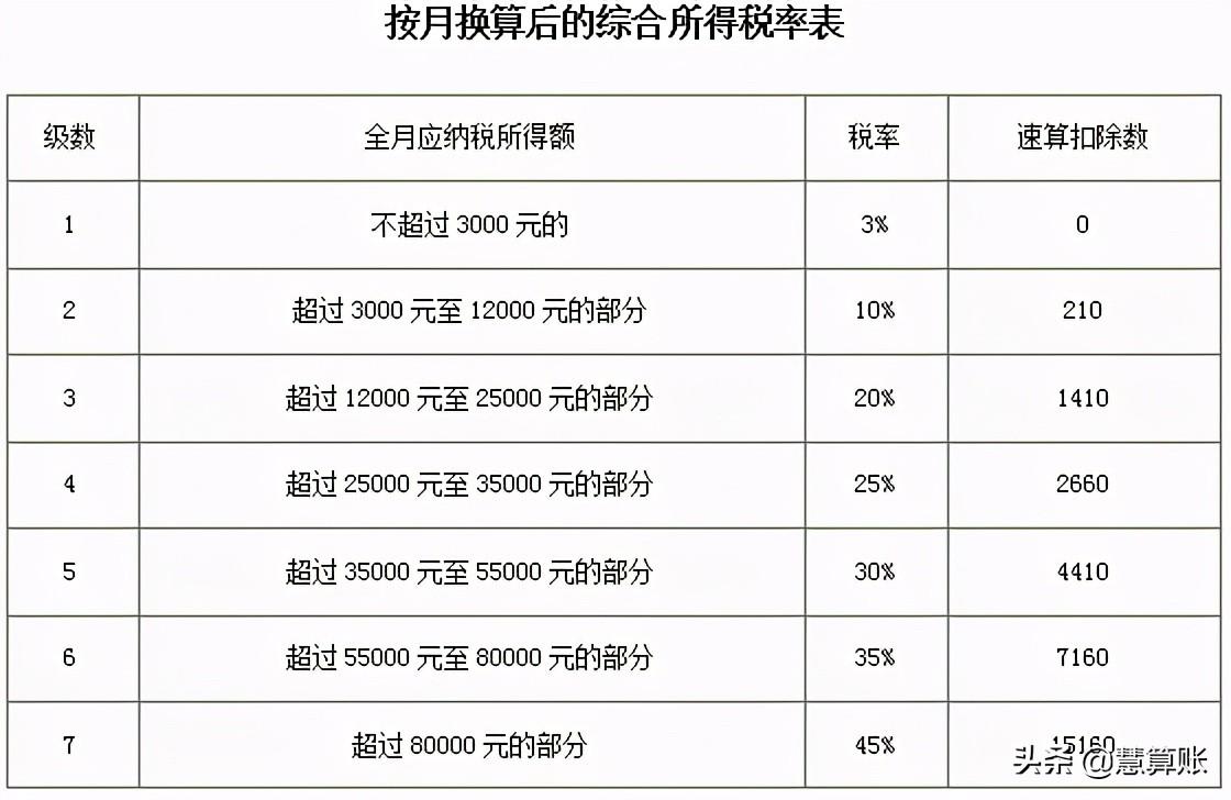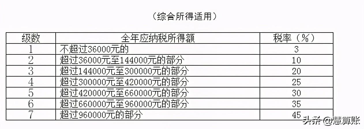 综合所得是指居民个人取得的工资、薪金所得;劳务报酬所得;稿酬所得和特许权使用费所得,适用百分之三至百分之四十五的超额累进税率(预扣率表见前述一、二)。