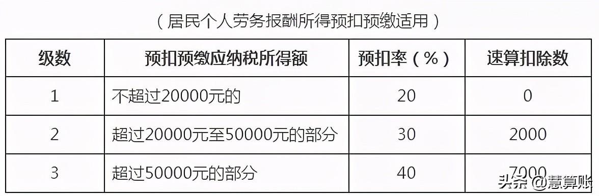 (2)居民个人稿酬所得、特许权使用费所得适用百分之二十的比例预扣率。