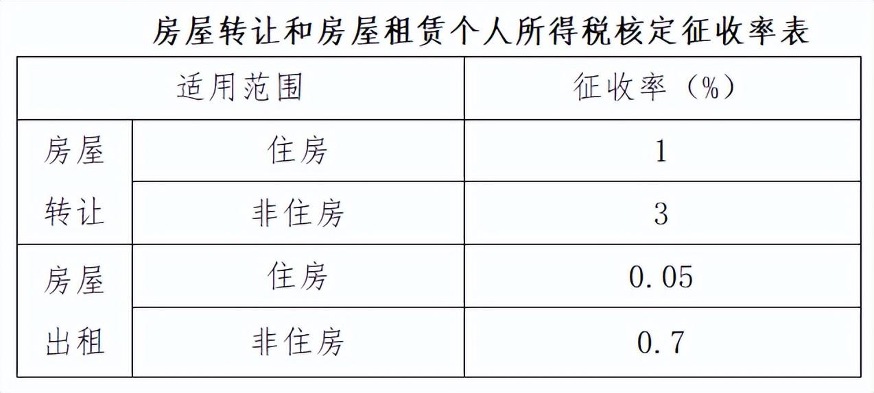 征收率标准按《房屋转让和房屋租赁个人所得税核定征收率表》执行。