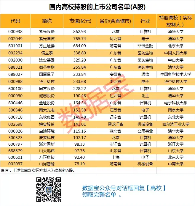 借着高考成绩陆续出炉,高考毕业生填志愿之际,证券时报·数据宝梳理了一批与高校有关联的上市公司名单。