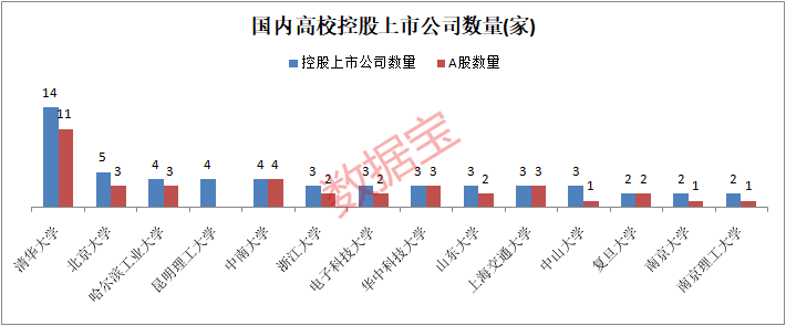 ,14所高校持股2家以上的公司,其中清华大学最霸气,为14家上市公司大股东,包含11只A股,如辰安科技、紫光学大、启迪古汉等,辰安科技实际控制人为清华大学