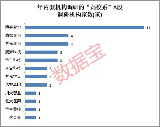 高校持股的同时,这些上市公司也获得了机构的青睐。数据宝统计显示,年内共有12家公司获机构调研,