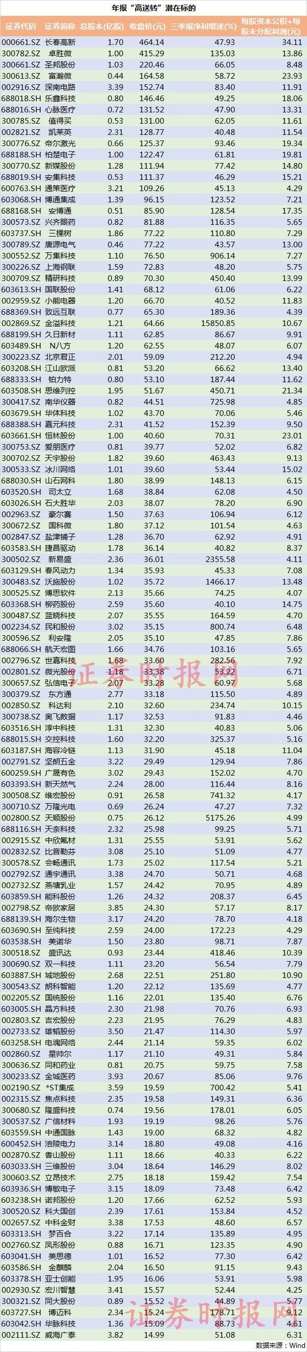 根据以上条件筛选,以下年报“高送转”潜在标的值得关注:
