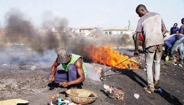 当然也有些懂得中间商赚差价的,他们低价雇用一批劳动力,让其捡拾垃圾,并以焚烧的方式将贵重金属提取出来,再进行统一收购。