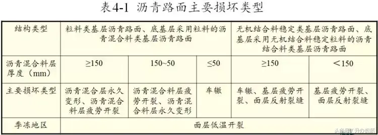 编制中表面,表4-1,列出了沥青路面主要损坏类型。